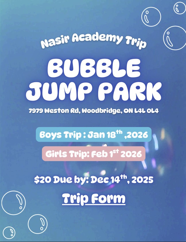 Nasir Academy York will organize field trips for all students during the academic year. Parents are responsible for covering the cost of their child’s participation. Lunch and school transportation will be provided